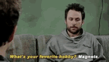 Charlie Day as Charlie Kelly reveals his favorite hobby is magnets in this iconic scene from It's Always Sunny in Philadelphia.