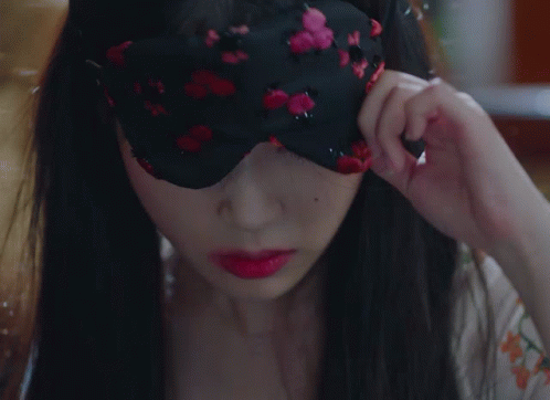IU looking beautiful with striking red lipstick and a thoughtful expression, adjusting her hair.