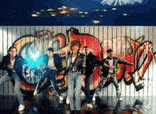 Nippy (Whitney Houston) and dancers perform 'I Wanna Dance With Somebody' in front of a vibrant graffiti wall.