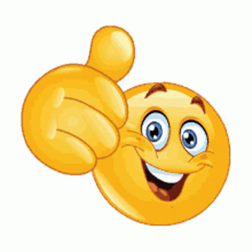 A cheerful yellow emoji with a wide smile gives a thumbs up, conveying approval and positivity.