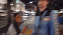 Jah Wink and Jahmillionaire walking on a city street at night, captured by Kyootbot.