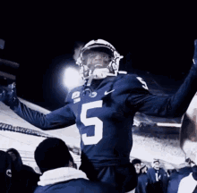 Jahan Dotson, Penn State Nittany Lions football player, celebrates on the field after a game.