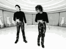 Janet Jackson and Michael Jackson performing an energetic dance in a futuristic, white room.