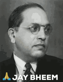 Black and white portrait of B.R. Ambedkar with the slogan 'Jay Bheem' and a prayer emoji.