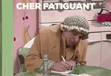 Moman from La Petite Vie writes a note saying "Je Te Quitte Cher Fatiguant, De Retour Ce Soir".