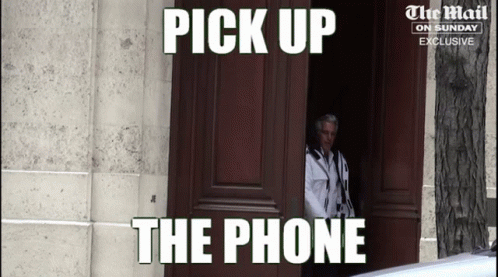 Jeffrey Epstein seen exiting a building with 'PICK UP THE PHONE' text overlay, an exclusive from The Mail on Sunday.