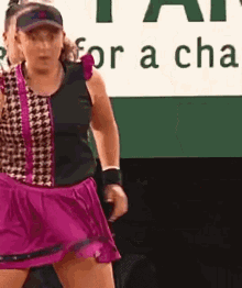 Jelena Ostapenko, a tennis player in a vibrant pink skirt and black top, moves with focus on the clay court.