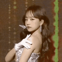 Jo Yuri, former IZONE member, delivers a captivating stage performance in a sparkling outfit and white gloves.