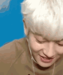 Chanyeol's expression changes from a smile to a surprised look, with his eyes wide open.