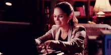 Rachel Bilson as Summer Roberts frantically typing at her laptop, pretending to be busy at work.