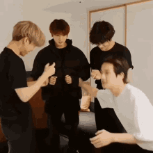 Jungkook looks confused while interacting with fellow BTS members, showing a funny reaction.