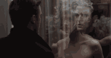 Justin Timberlake looking at his reflection in a mirror.