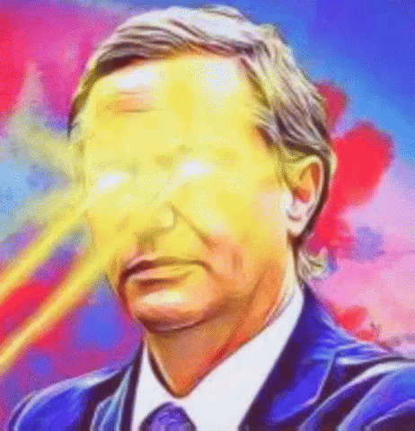 Jose Antonio Kast, also known as JAK, depicted with intense, glowing laser eyes in a vibrant, colorful artwork.