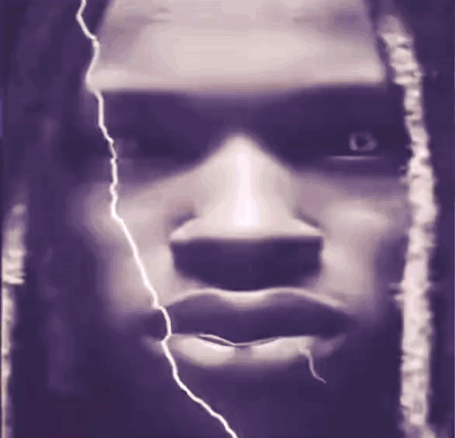 King Von's face with glowing red eyes and lightning effects, creating a popular meme.