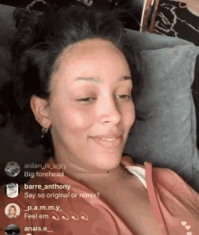 Doja Cat laughs while lying down, interacting with comments during a Kinkytwt Stan Twitter session.