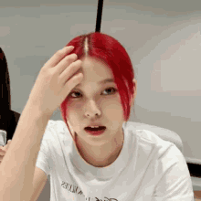 Kyujin Hikari Kyujin's Red Hair & White T-shirt Look