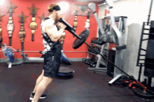 Stephen Farrelly, also known as Sheamus, performs a Landmine Press exercise in a gym.