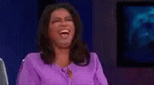 Woman laughs hysterically, throwing her head back in a studio setting, crying from laughter.