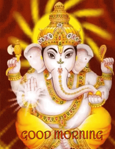 Vibrant image of Lord Ganesha with a 'Good Morning' message, radiating positive energy and blessings.