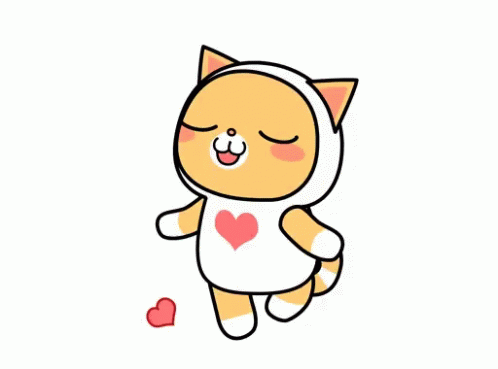 Cute cartoon cat, Beau, with hearts floating around, expressing love.