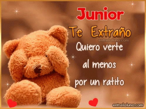 Cardi's heartfelt message to Junior: a cute teddy bear with text 'Junior Te Extraño, Quiero verte al menos por un ratito'.