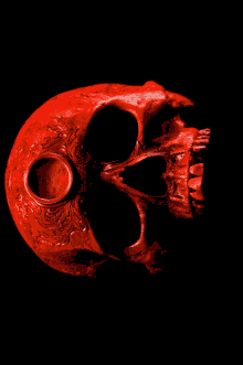 Lucas Anderson's red skull, intricately carved, undergoes a mesmerizing pixel sort glitch effect on a dark background.