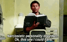 Lucifer from Supernatural reads about narcissistic personality disorder and humorously relates to it.