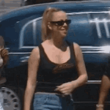 Mariah Carey makes a stylish entrance, waving and smiling in sunglasses and a black tank top.