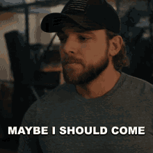 Max Thieriot as Clay Spenser from Seal Team, saying 'Maybe I should come' while wearing a cap.