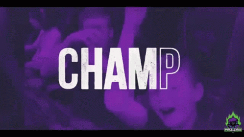 A bold white 'CHAMPION' text overlay on a vibrant purple background, featuring the Mazizaw Mazzcon2019 branding.