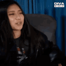 Mei Suruga, the Choco Pro wrestler, reacts and talks while sitting in a chair, wearing a black jacket.