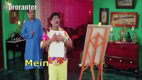 Johnny Lever comically refuses to reveal information, holding a blank paper and exclaiming 'Mein Nahi Bataunga'.