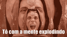 A popular meme featuring a recursive screaming face with the Portuguese text 'Tô com a mente explodindo'.