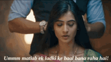 Shivangi Khedkar reacts as a man styles her hair, a tender moment from the show MHRW.