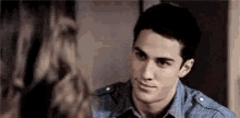 Michael Trevino displays a knowing smile and various expressions in a dimly lit room.
