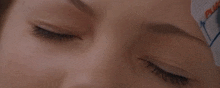 Close-up of Michelle Williams' blue eyes slowly opening, from her role in the movie Species.