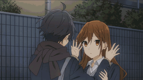 Miyamura and Hori share a tender kiss in this romantic anime scene from Horimiya.