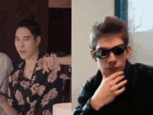 Mj and another man engage in a popular finger gun meme, featuring a split screen with distinct styles and expressions.