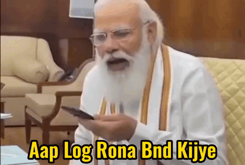Modi Ji delivers a message, telling people to stop crying while holding a phone.