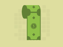 An animated roll of toilet paper made of money, featuring a prominent dollar sign.
