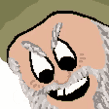 Pixel art Moonmoon Gnome with a long white beard and green hat, smiling and saying 'HOO'.