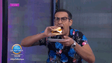 A man takes a huge bite of a sandwich on the Mexican morning show 'Venga La Alegria', live on TV Azteca.