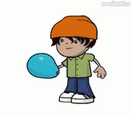 A cartoon boy holds a blue balloon that pops in a splash, reminiscent of Msn Messenger winks.