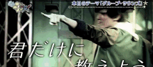 Mukai Koji points directly at the viewer, with Japanese text about 'Group Sound' visible on screen.