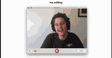 Simon De Wit, also known as Musicbyblanks, laughing while using a Photo Booth application for editing.