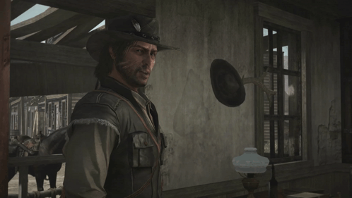 John Marston from Red Dead Redemption introduces himself with the iconic line, 'My name is John Marston.'