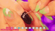 Watch a detailed tutorial on creating spooky Ouija board nail art with black and green polish.