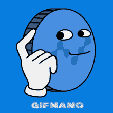 A blue Nano Coin character with a face gets its head tapped by a white gloved hand, a popular crypto meme.