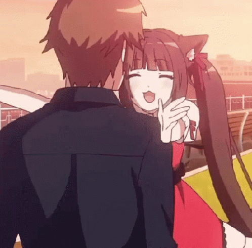 Chocola from Nekopara shares a warm hug with a boy, expressing affection.