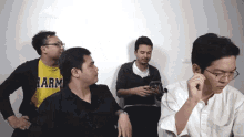 A group of men, including one in an 'ARMY' shirt, react with 'WHAT ?' in a 'Next Xter' moment.
